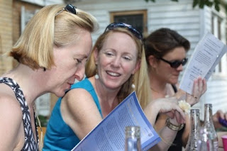 The party was set from 1-4 on our back patio. A party like this could be done inside, but outside with maximum ventilation was best. As everyone arrived, they set their appetizers and desserts on our dining room table to go with my cheese and fruit tray. We ate and chatted for about an hour.